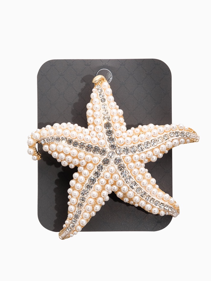- Оригинальность и стиль: элегантный дизайн морской звезды сочетается с чистым белым цветом и блеском золотых деталей, что обеспечивает презентабельность и привлекательность аксессуара.