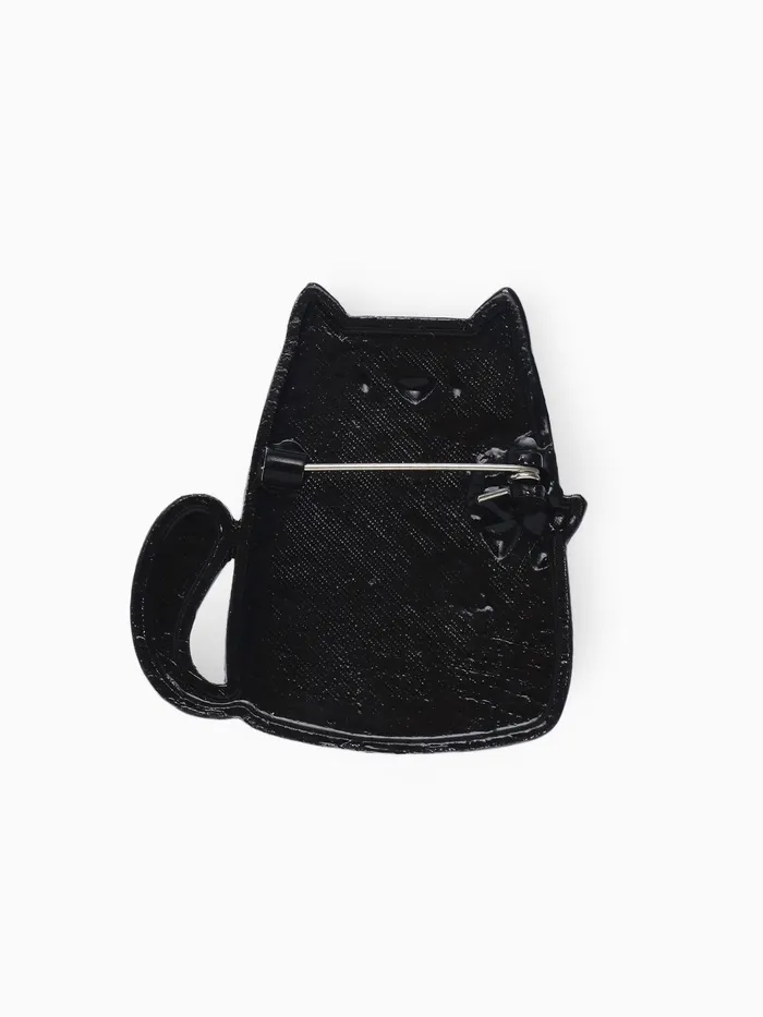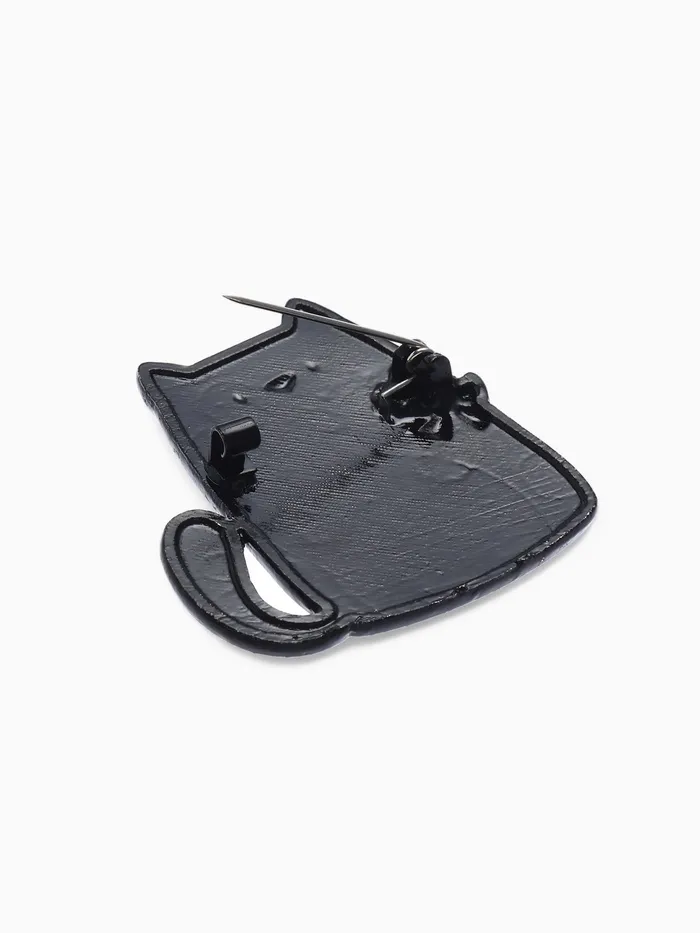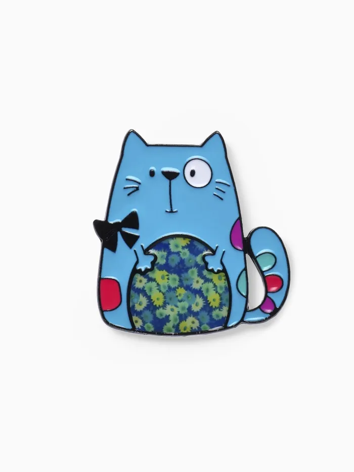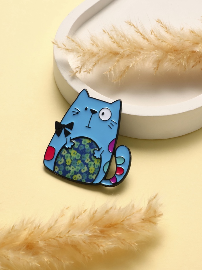 Очаровательная брошь с изображением мультяшного кота в чёрном металлическом обрамлении и нежно-голубым бантом станет ярким акцентом в вашем образе. Компактный размер 4,3 см позволяет легко сочетать украшение с разными стилями одежды, добавляя игривость и индивидуальность.