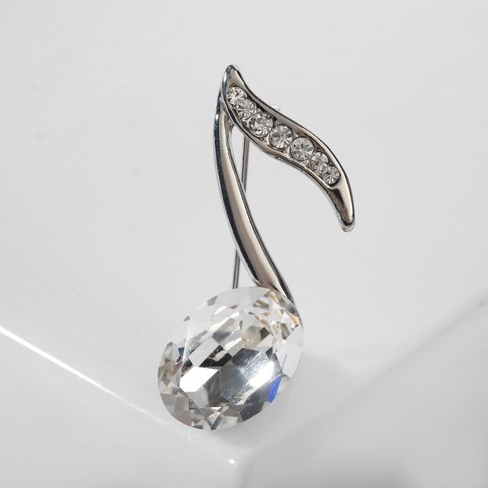 Брошь «Нота» из симфонии, белая в серебре