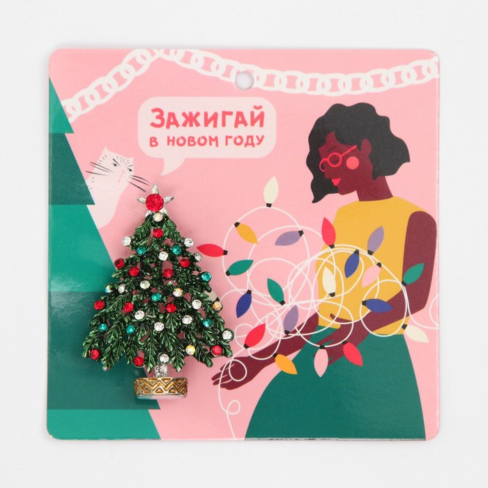 Брошь новогодняя «Ёлка» на подставке, цветная в серебре