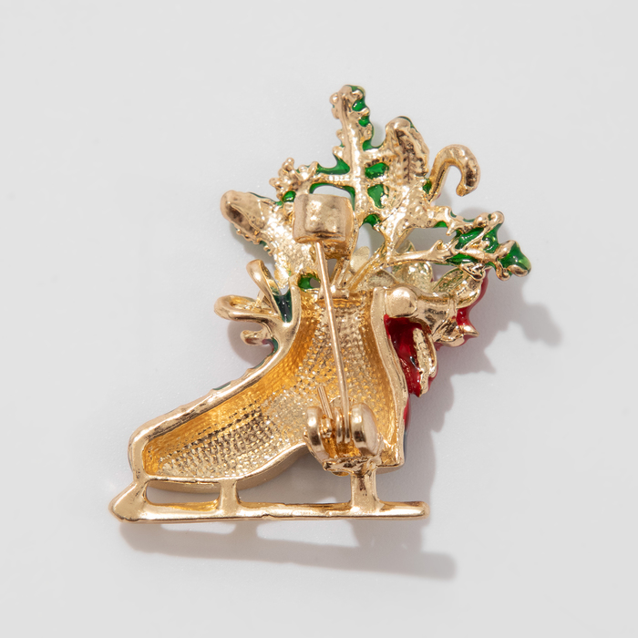 Брошь новогодняя «Конёк» с цветами, цветная в золоте — Характеристики