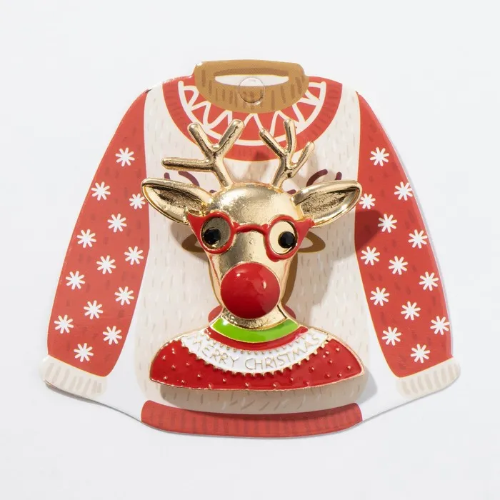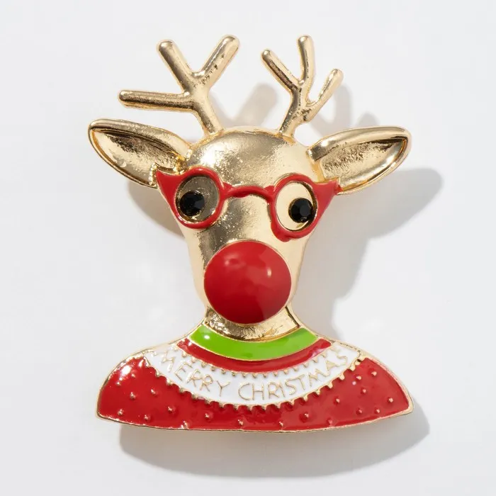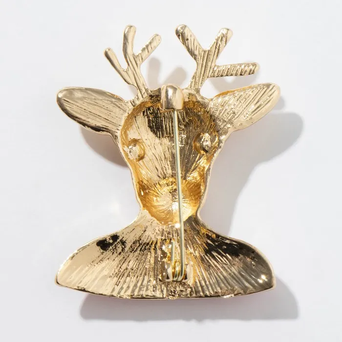 Брошь «Новогодняя» олень в свитере, цветная в золоте — Характеристики