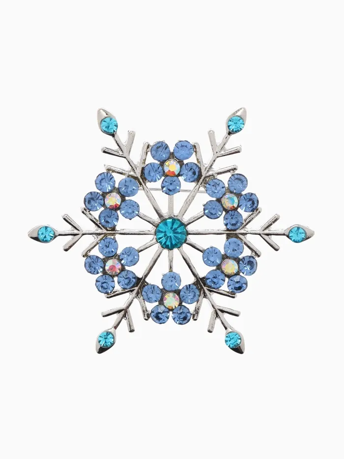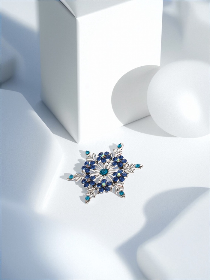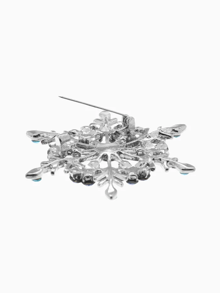 Брошь новогодняя «Снежинка», цвет радужно-синий в серебре — Характеристики