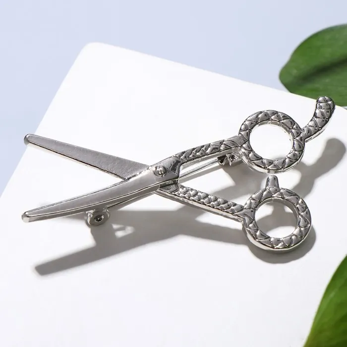 Элегантная брошь в форме ножниц — идеальное украшение для тех, кто ценит профессионализм и стиль. Серебристый металлический оттенок и длина 6,5 см делают её заметным, но при этом изящным акцентом в образе, подчёркивающим индивидуальность и творческий подход.