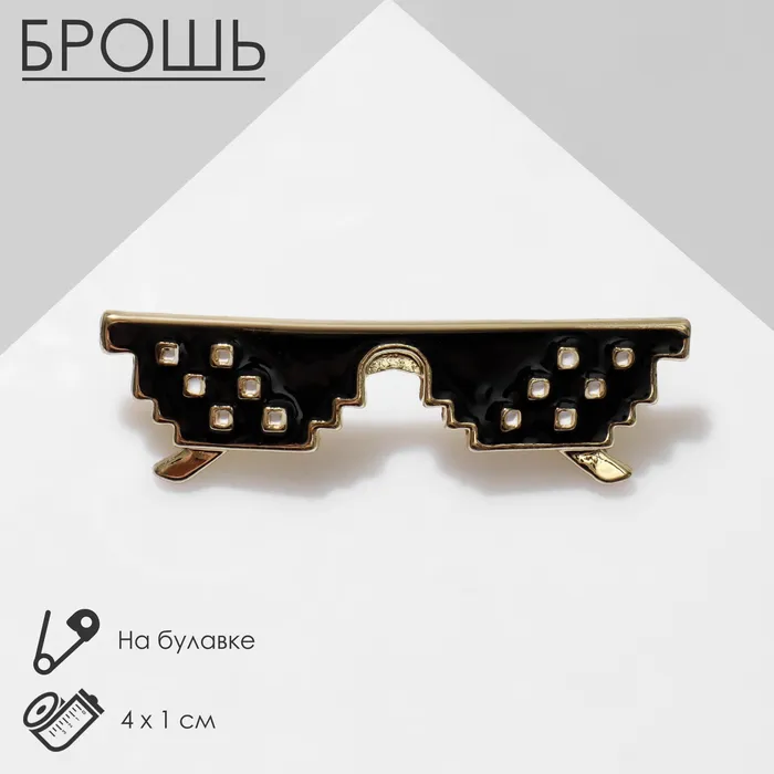 Брошь «Очки» в пикселях, цвет чёрный в золоте — Характеристики