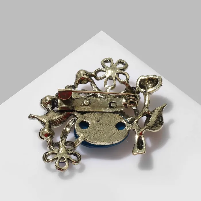 Брошь «Оливка» с цветами, цвет сине-голубой в чернёной бронзе — Характеристики