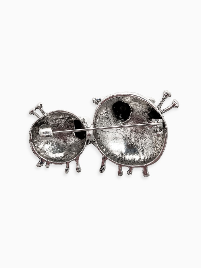 Изготовленная из высококачественного металла, брошь поражает внимание красивыми чертами рисунка и элегантностью отделки. Чернённое серебро создает резкий контраст с чистым белым цветом, делая пару овечек выразительными и запоминающимися.