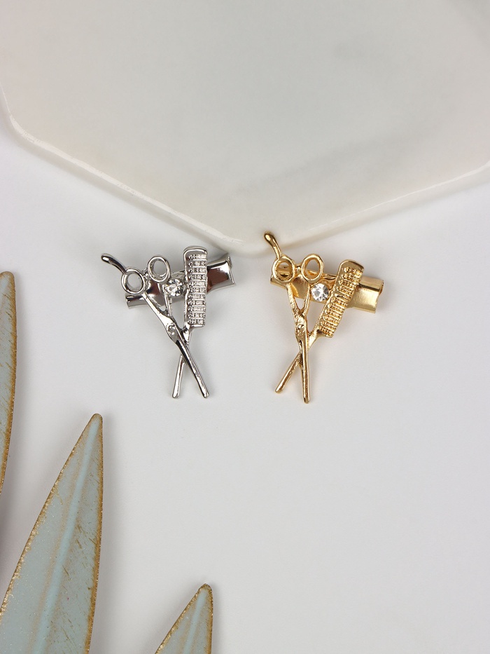 Изготовленная из прочного металла, эта брошь отличается не только качеством, но и оригинальным дизайном в тематике парикмахерского искусства. Украшенная стразами, она станет отличным аксессуаром для профессионалов и любителей, подчеркивая вашу страсть к парикмахерскому делу.