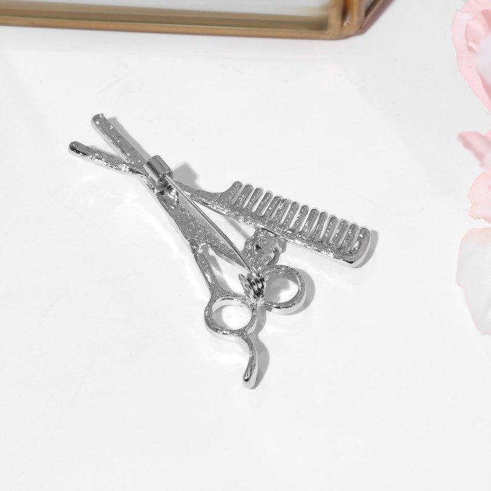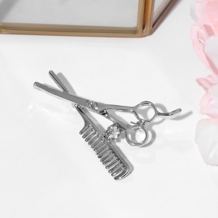 Брошь «Парикмахер», цвет белый в серебре — Характеристики
