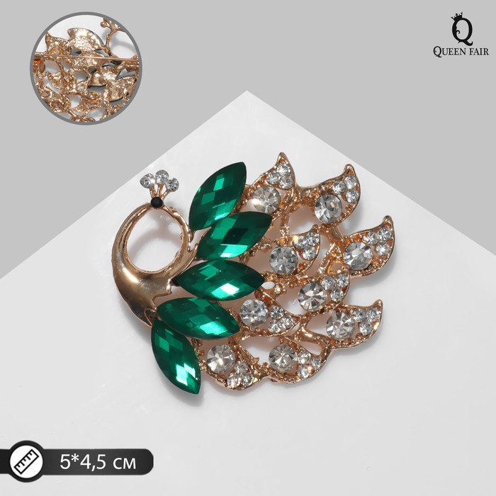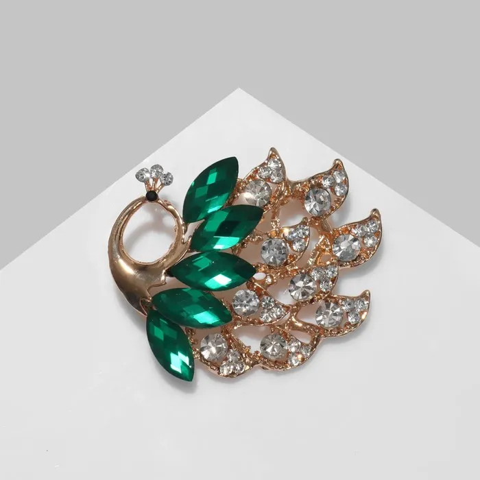 Брошь «Павлин», бело-зелёная в золоте — Характеристики