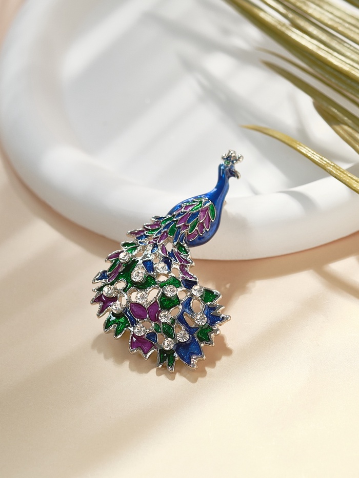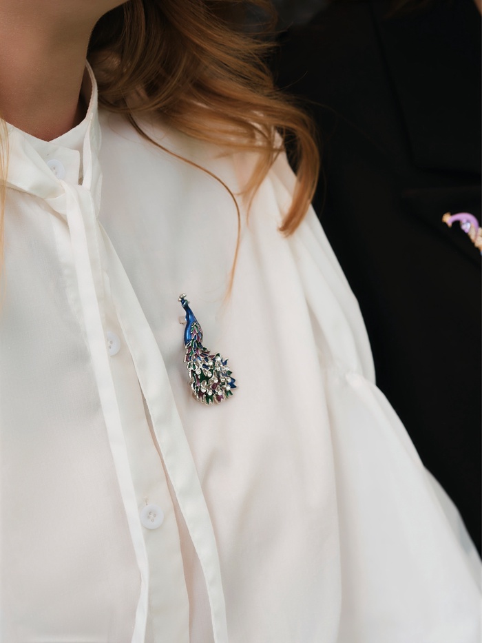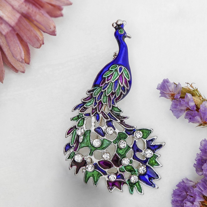 Брошь «Павлин роскошный», цветная в серебре — Характеристики