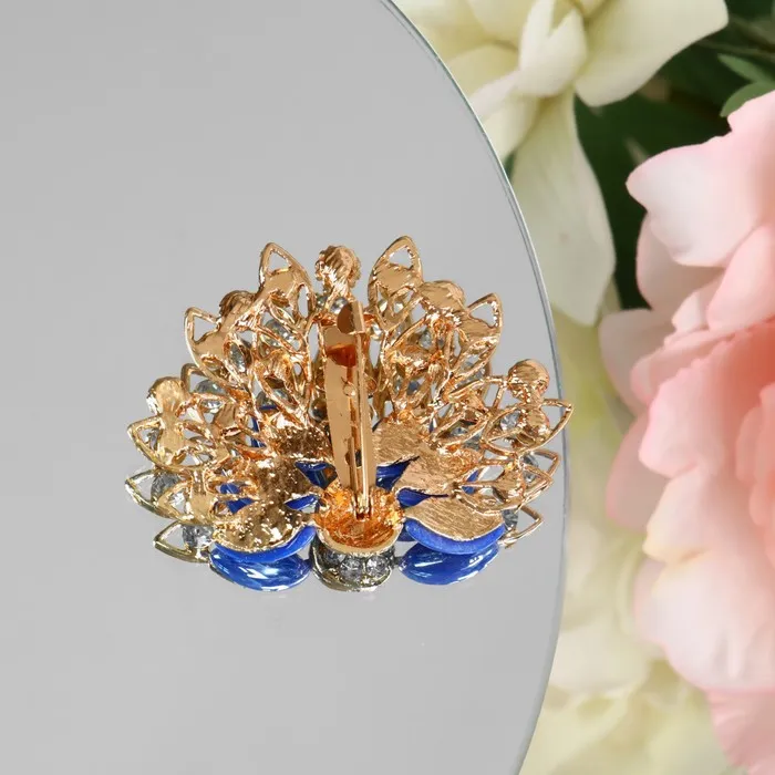 Брошь «Павлин» с пушистым хвостом, цвет синий в золоте — Характеристики