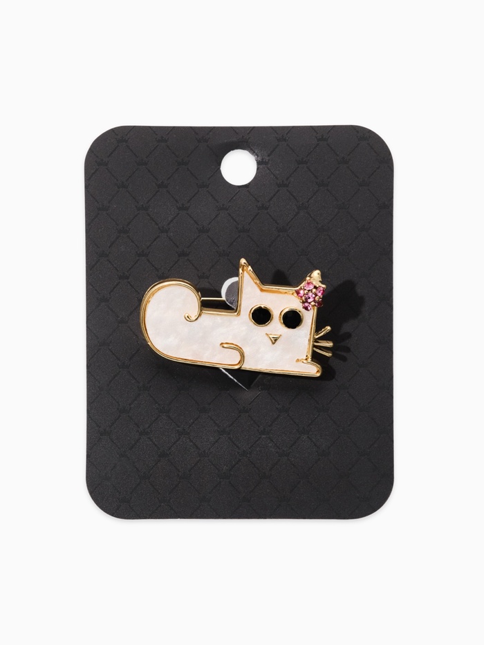 Брошь перламутровая «Котёнок с цветочком», белая в золоте — Характеристики