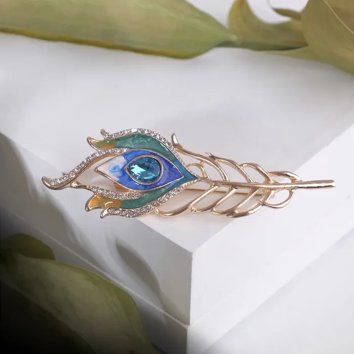 Изготовленная из качественного металла с золотым покрытием, эта брошь радует глаз своим блеском и прочностью. Стразы и эмалевая отделка придают ей яркость и выразительность, а тематика пера добавляет нотку загадочности и шарма. Это украшение идеально подходит для женщин всех возрастов и станет прекрасным подарком для подруги, сестры, мамы или бабушки, подчеркивая их уникальность.