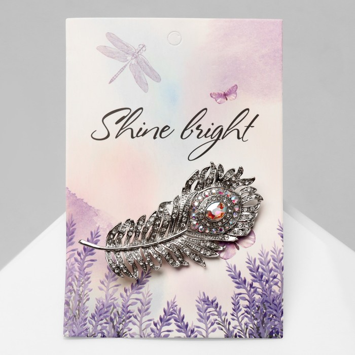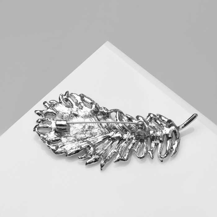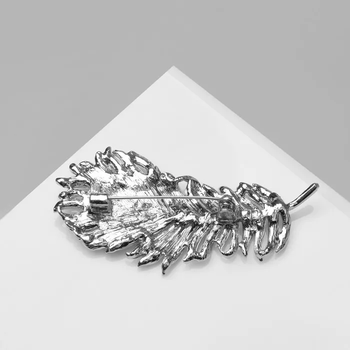 Брошь «Перо павлинье» пушистое, радужная в серебре — Характеристики