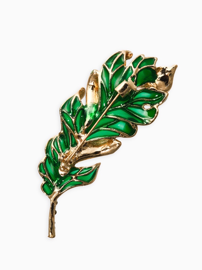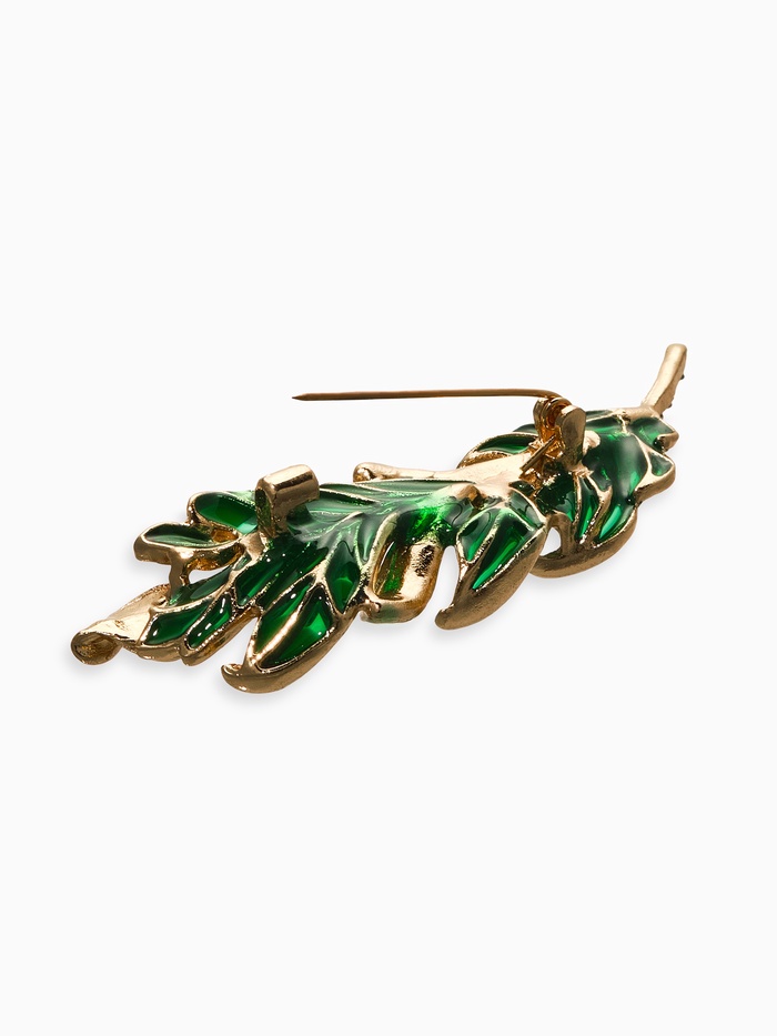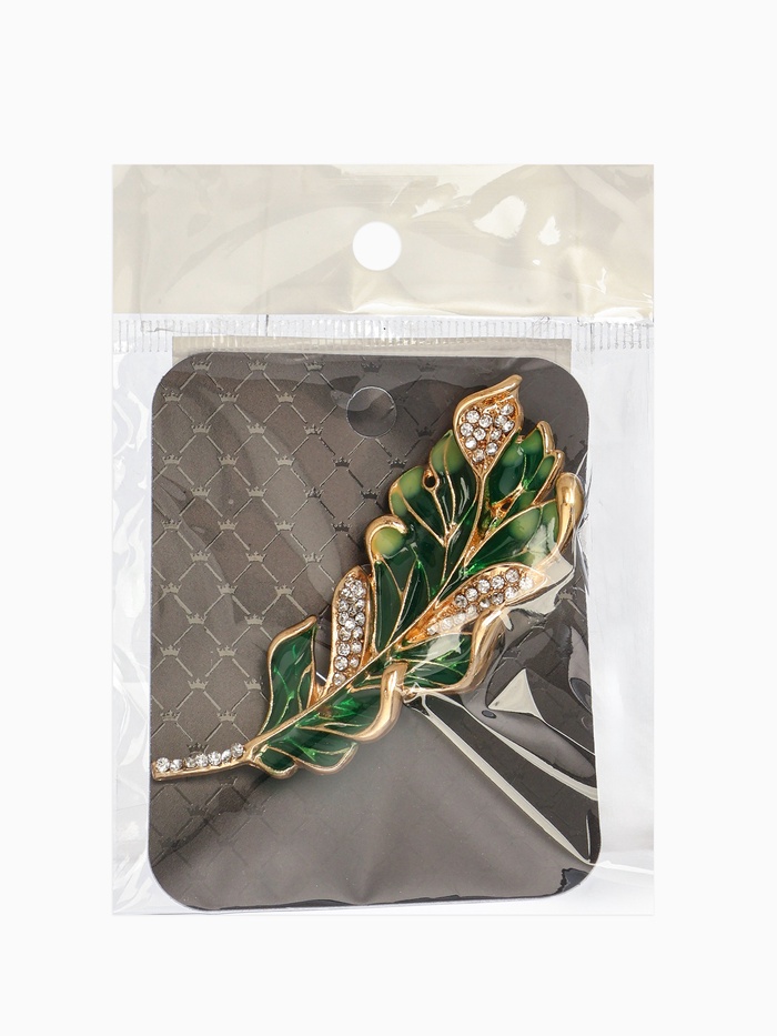 Брошь «Перо» прозрачное, зелёный, белый в золоте — Характеристики
