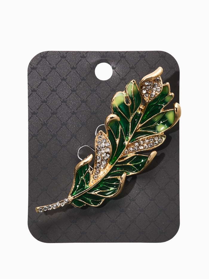 Хотите привнести немного магии и таинственности в свой образ? Представляем эксклюзивную брошь «Перо» — настоящее сокровище, готовое дополнить ваш гардероб необычным, завораживающим аксессуаром. Изготовленная из качественного металла, эта брошь представлена в элегантных зелёных и белых оттенках, украшена яркими элементами эмали и сверкающими стразами, создавая впечатление настоящего перышка, наполненного светом и жизнью.