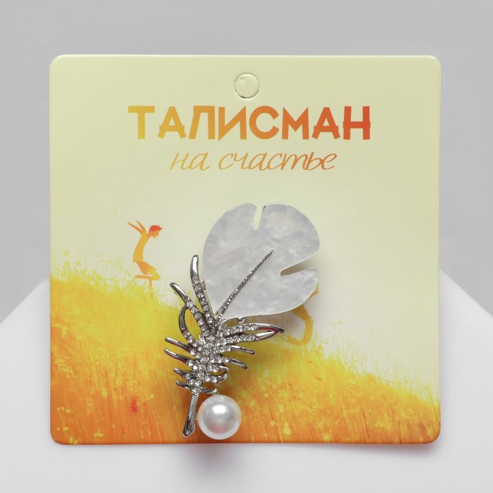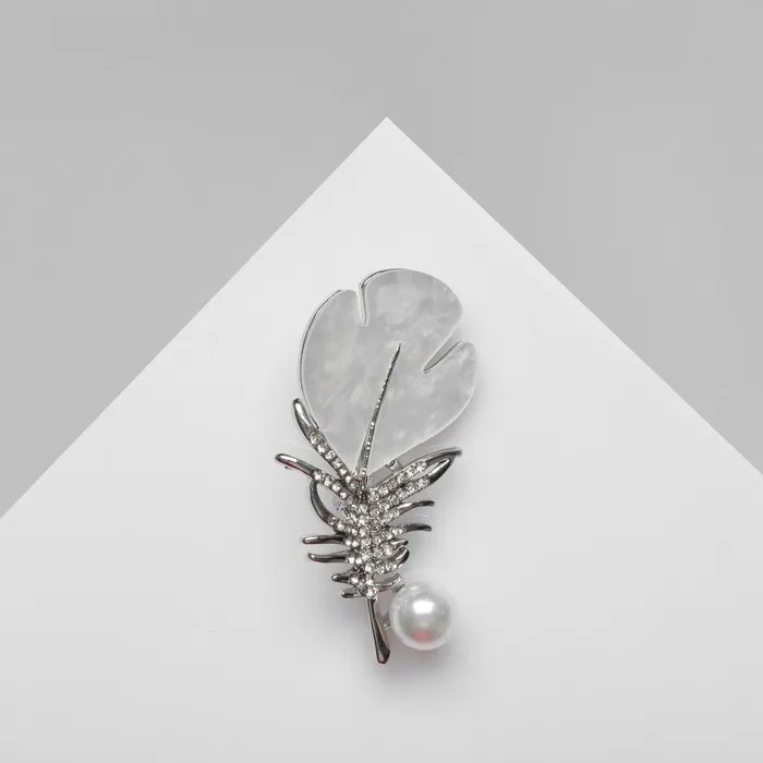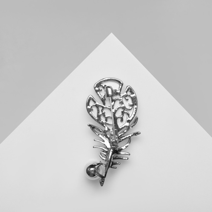 Брошь «Перо» с бусиной, цвет белый в серебре — Характеристики