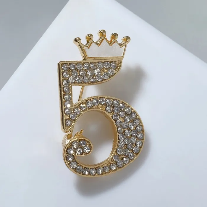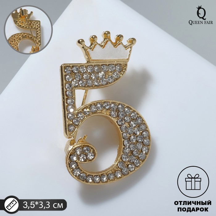Брошь «Пятёрка» с короной, белая в золоте — Характеристики