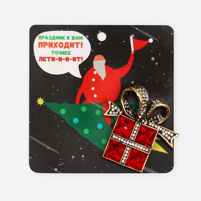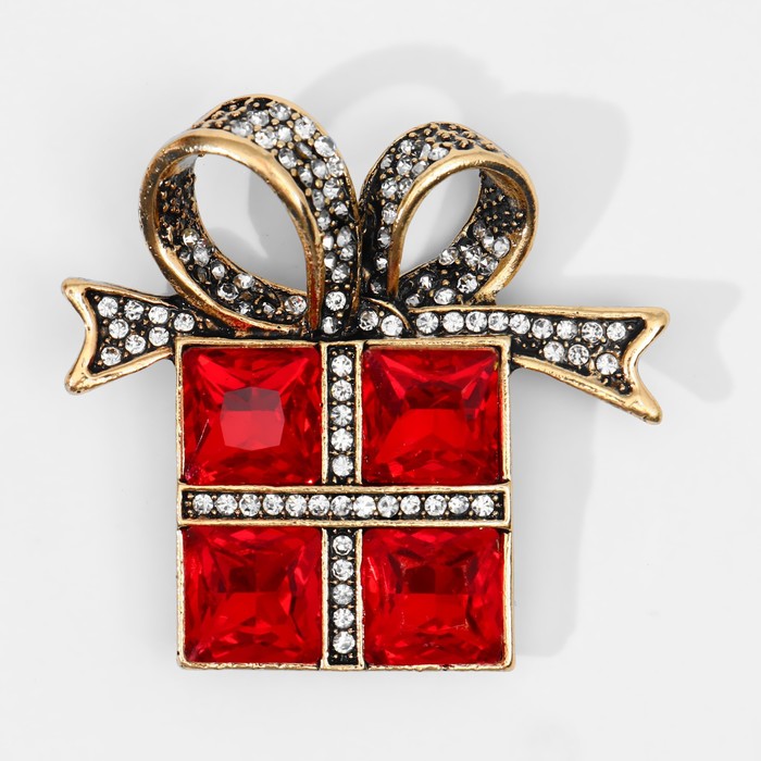 Брошь «Подарок» с бантиком, цвет красно-белый в чернёном золоте — Характеристики