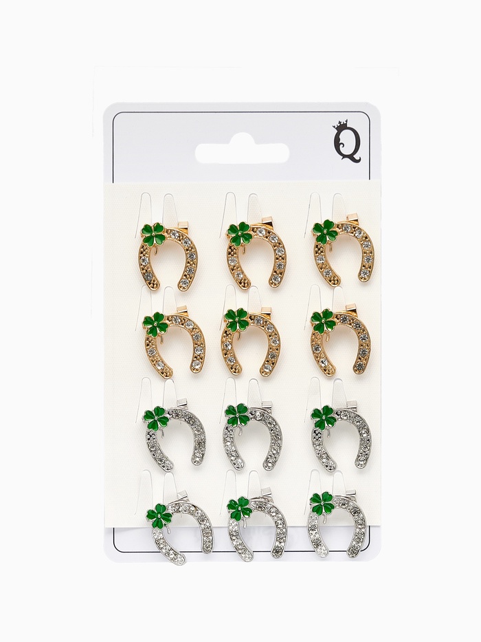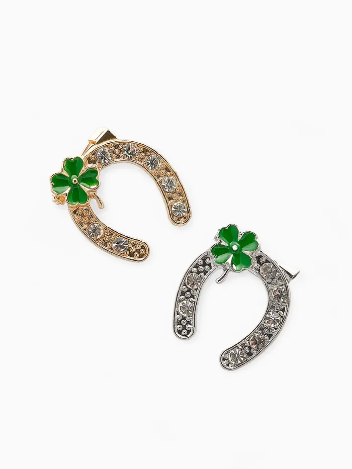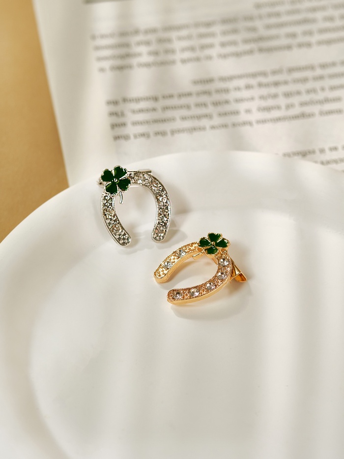 Брошь «Подкова» на удачу с клевером, цвет МИКС (неделимая фасовка 12 шт., цена за шт.) — Характеристики