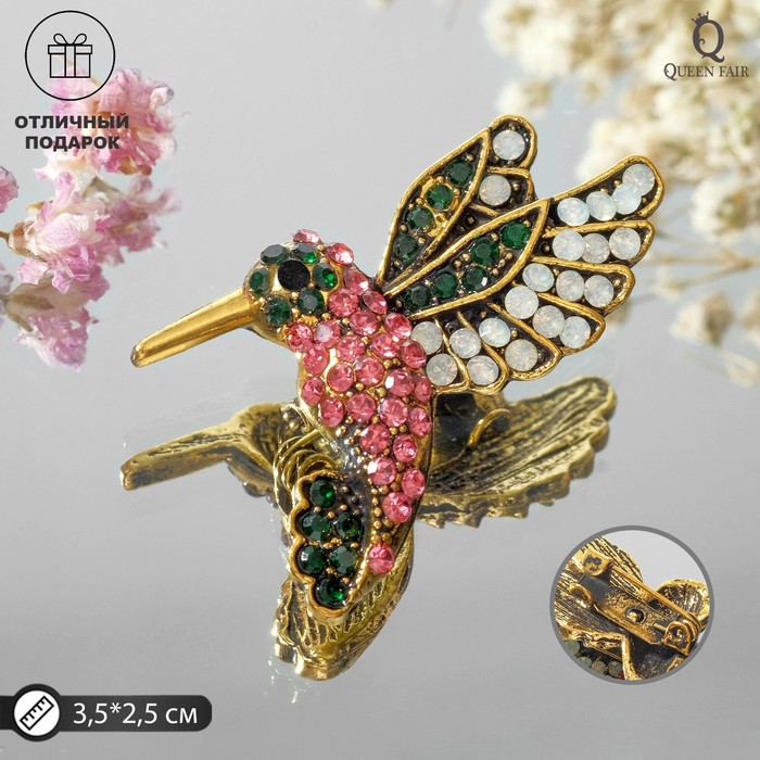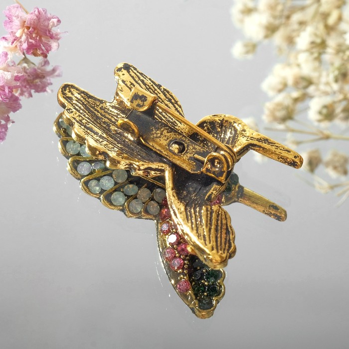 Брошь «Птичка» колибри, малиново-зелёная в чернёном золоте — Характеристики