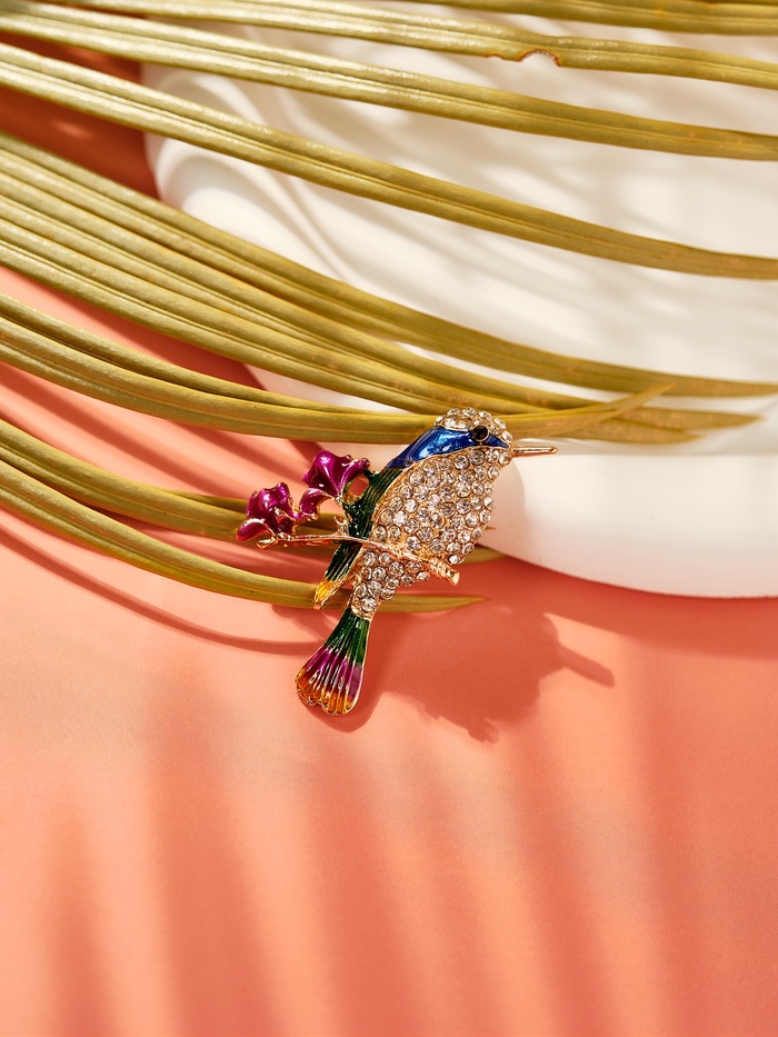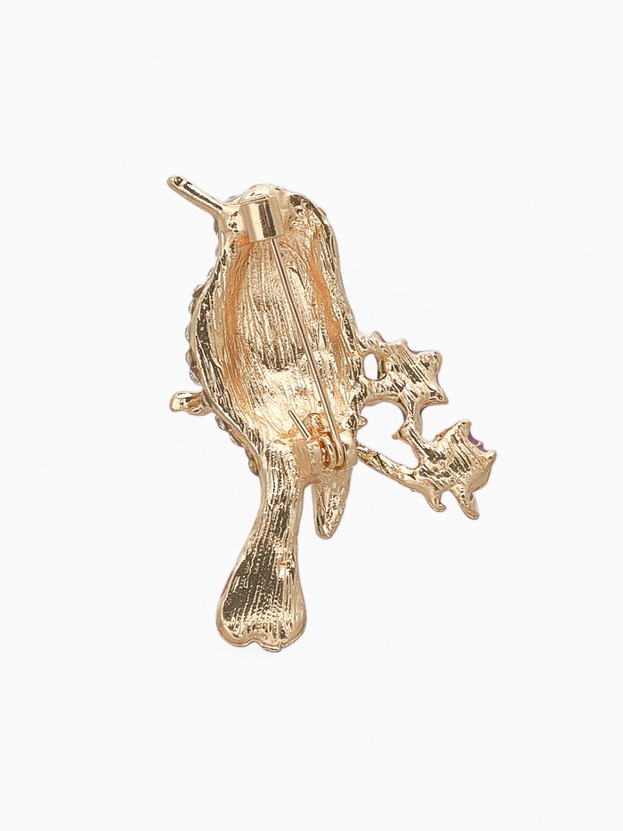 Брошь «Птичка» малышка на ветке, цветная в золоте — Характеристики