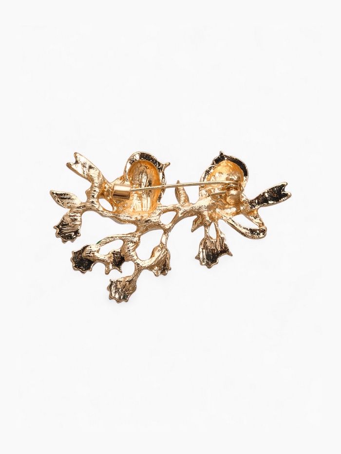 Брошь «Птички» на цветочной ветви, цветная в золоте — Характеристики
