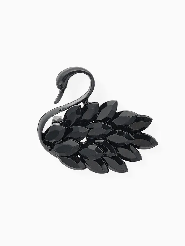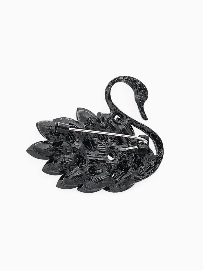 Брошь «Птица» лебедь, цвет чёрный в чёрном металле