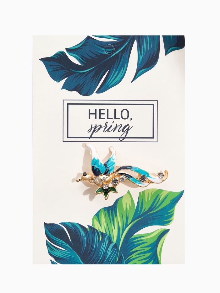 Брошь «Птица счастья», цвет бело-голубой в золоте — Характеристики