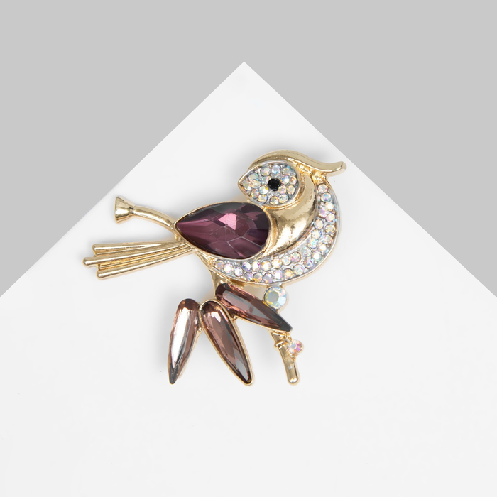 Брошь «Птица» волшебная, радужно-фиолетовая в золоте — Характеристики