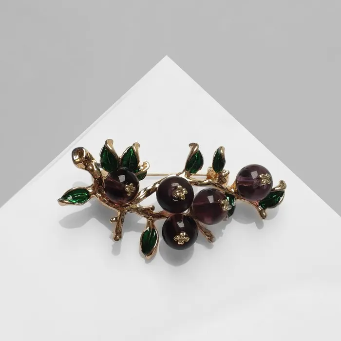 Брошь «Рябина» ягоды, цвет фиолетово-зелёный в золоте — Характеристики