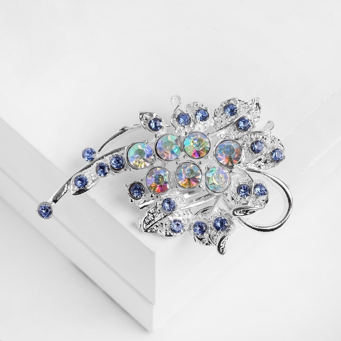 Брошь «Роса» на ветке, цвет голубой в серебре — Характеристики