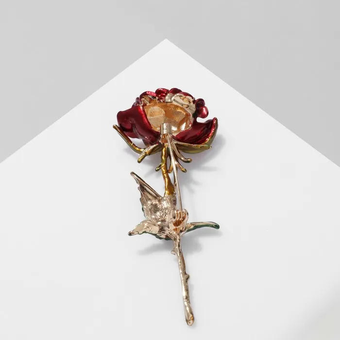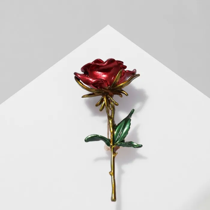Откройте для себя красоту и элегантность с этой изысканной брошей в форме розы. С длиной 7,5 см, она выполнена из прочного металла с золотым покрытием и украшена яркой эмалью в красных и зелёных тонах, что делает её настоящим акцентом в любом образе.