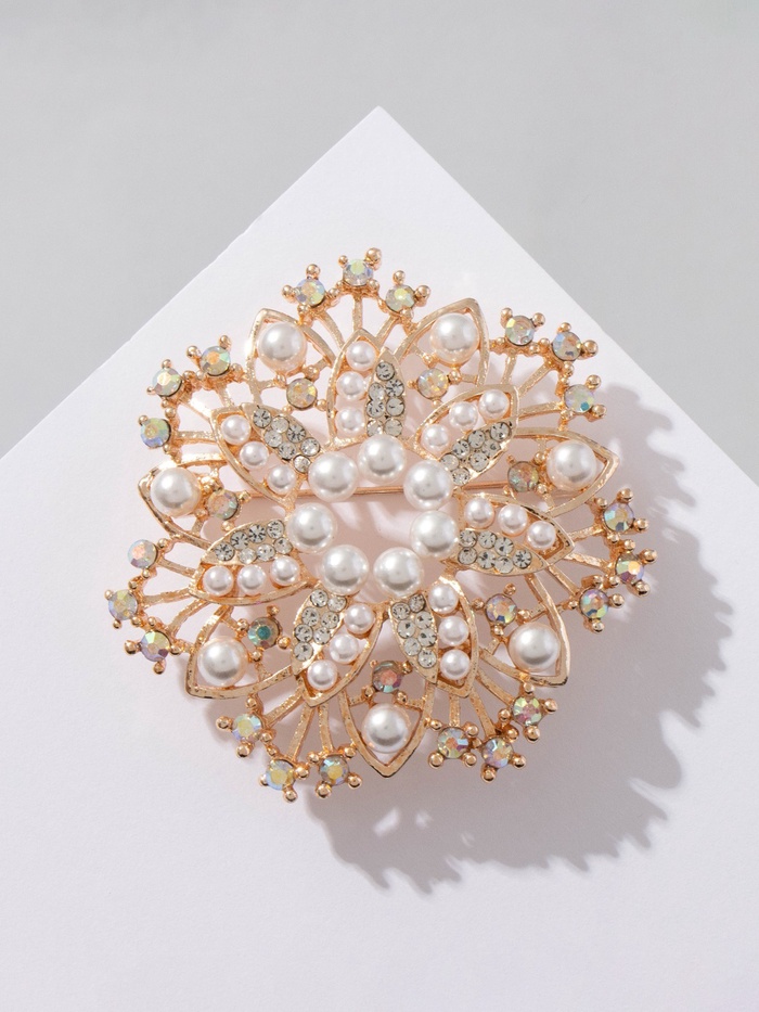 Брошь с жемчугом «Снежинка», белая в золоте — Характеристики