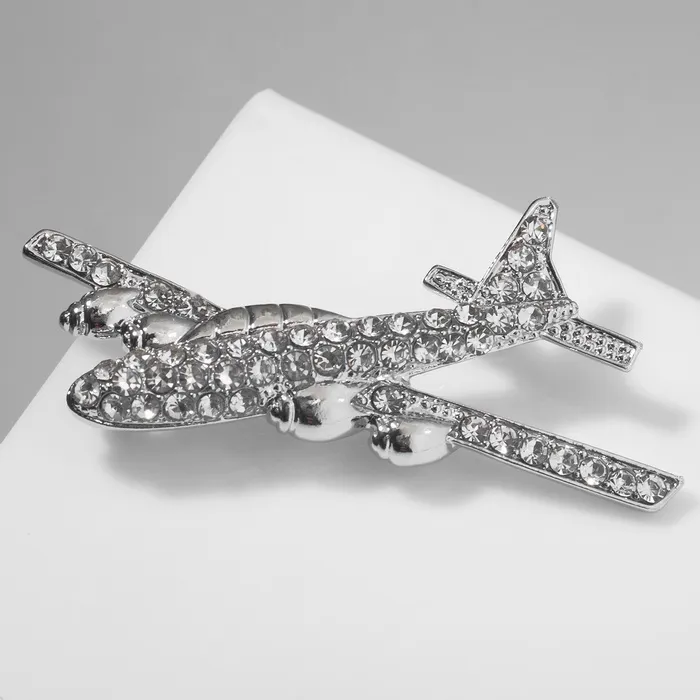 Откройте для себя уникальную брошь в форме парящего самолета, которая станет неотъемлемой частью вашего стильного образа. С длиной всего 3 см и выполненная из качественного металла с серебряной фурнитурой, она идеально подходит как для повседневной носки, так и для особых случаев. Белый цвет и блестящие стразы придают ей элегантность и изысканность, делая её настоящим украшением.