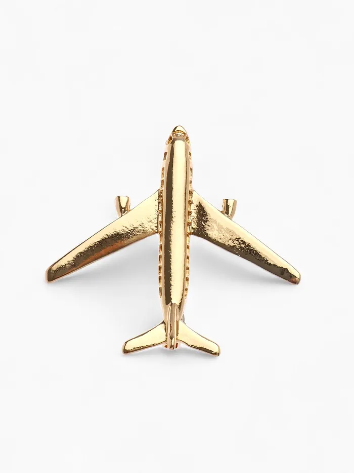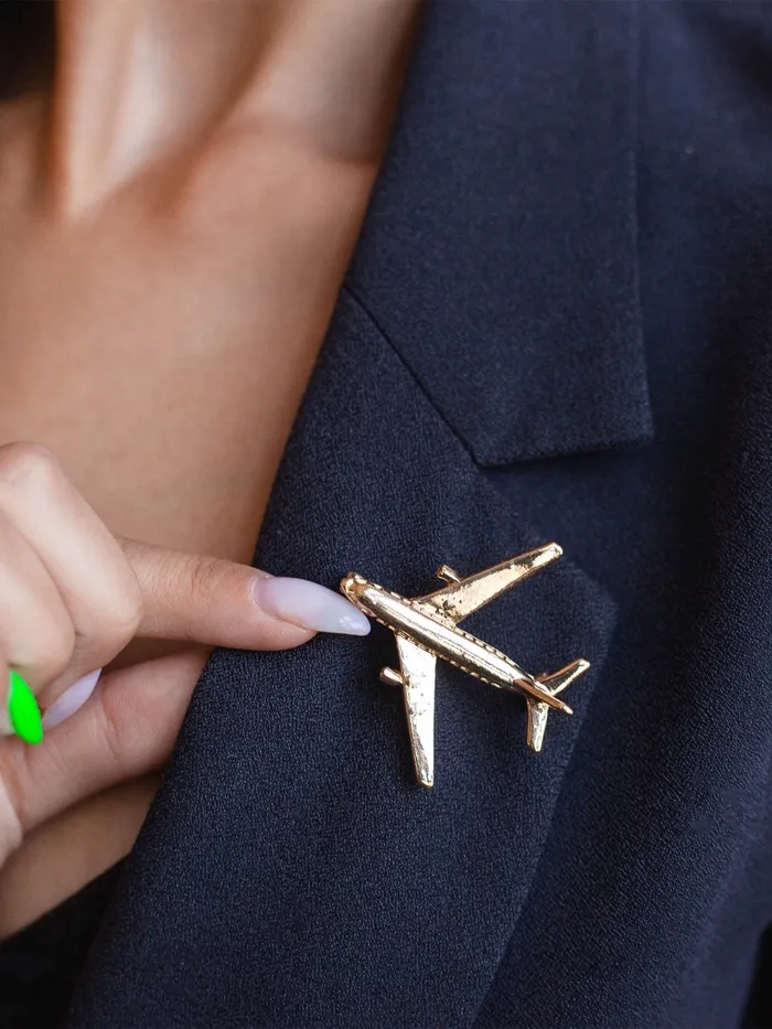 Погрузитесь в мир стиля и оригинальности с уникальной брошей в форме самолета, выполненной в золотистом цвете. Этот аксессуар станет идеальным дополнением к вашему образу, подчеркивая вашу индивидуальность и любовь к путешествиям.