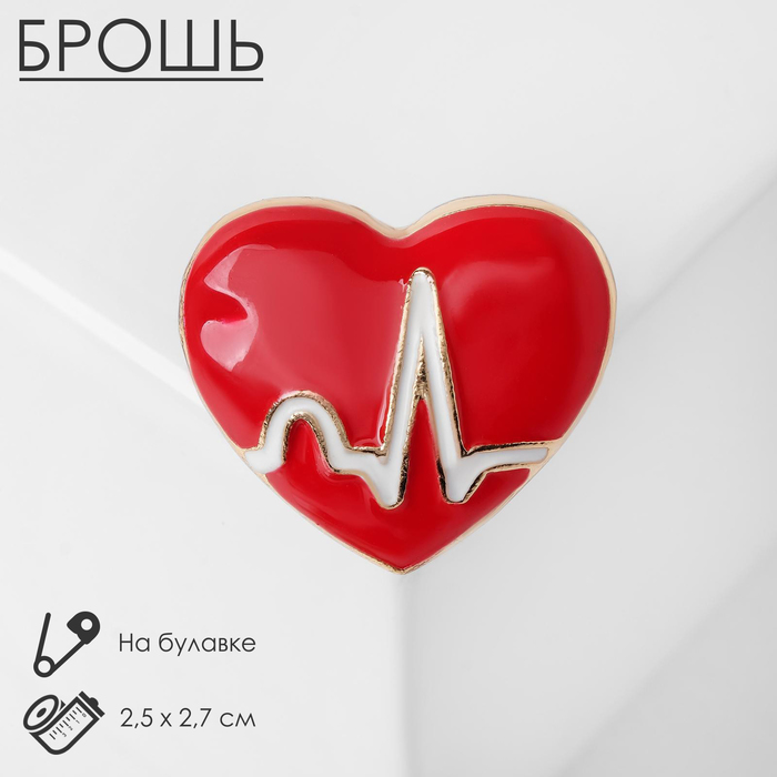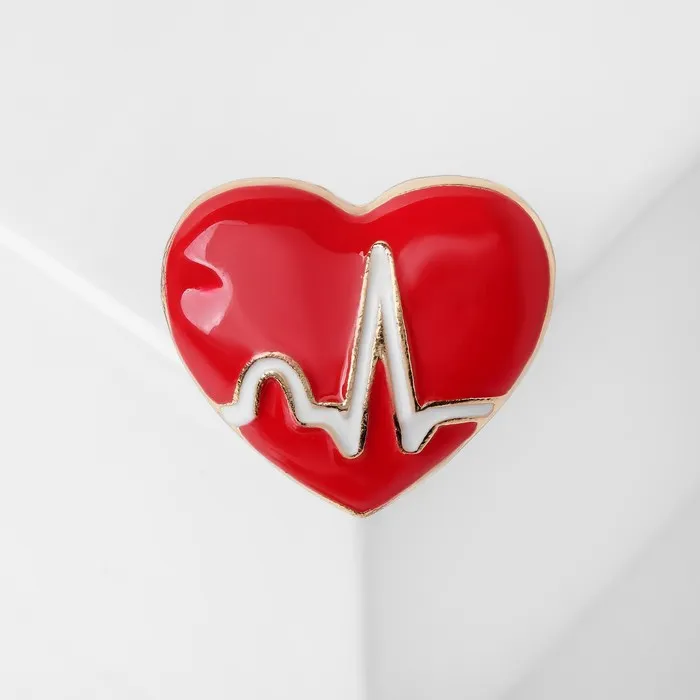 Изящная брошь с изображением сердца и кардиограммы в красно-белом исполнении на золотистой металлической основе — символ заботы и профессионализма в сфере медицины. Компактный размер 2,5 см делает украшение универсальным и удобным для ежедневного ношения, подчёркивая значимость профессии медицинского работника без излишней помпезности.