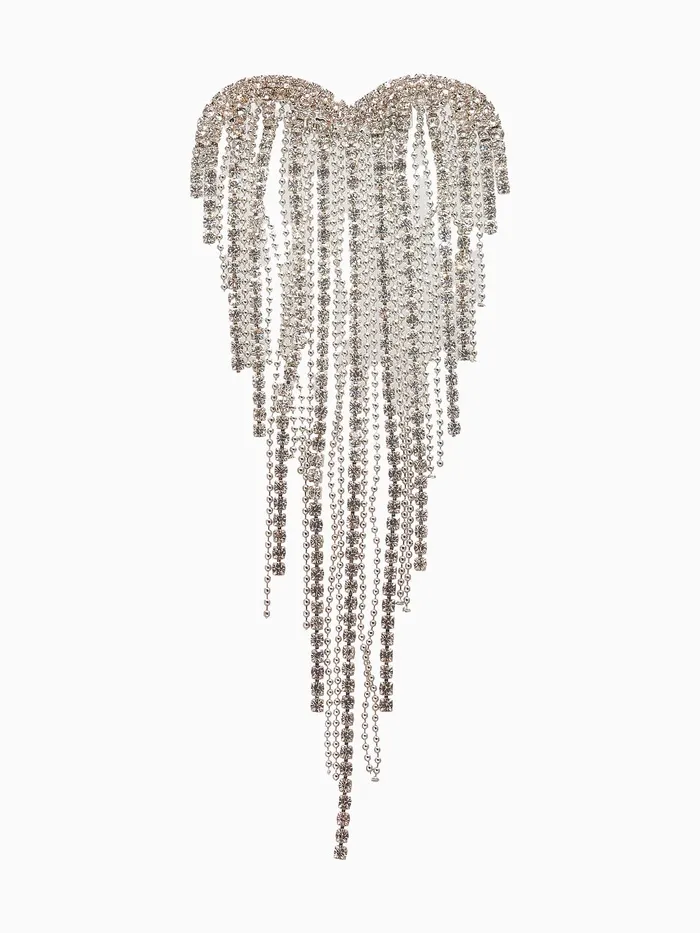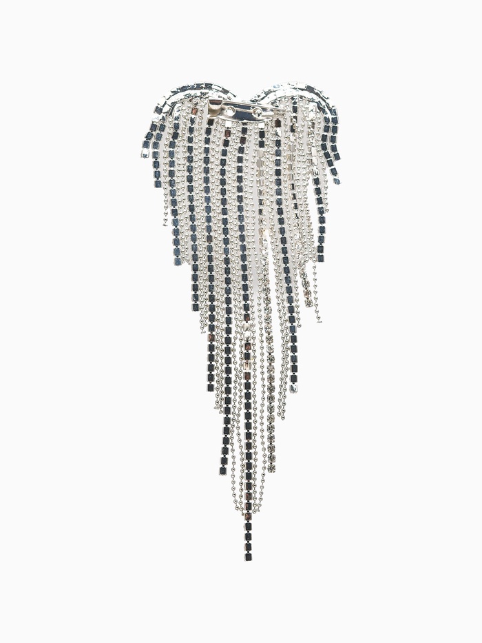 Брошь «Сердце» водопад сраз, белая в серебре — Характеристики
