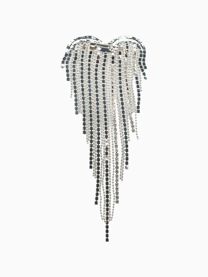 Объёмная брошь с изящным дизайном в форме сердца, украшенного каскадом сверкающих страз, станет эффектным дополнением к вашему образу. Размер 12,5 см придаёт украшению выразительность, позволяя ему стать центральным акцентом в любой композиции одежды.