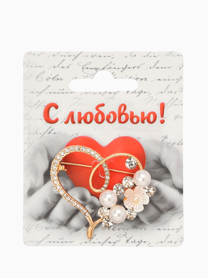 Брошь «Сердце» жемчужное, цвет белый в золоте — Характеристики