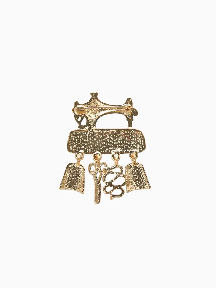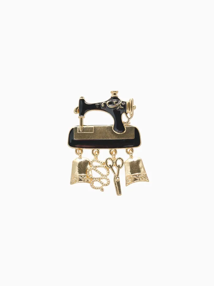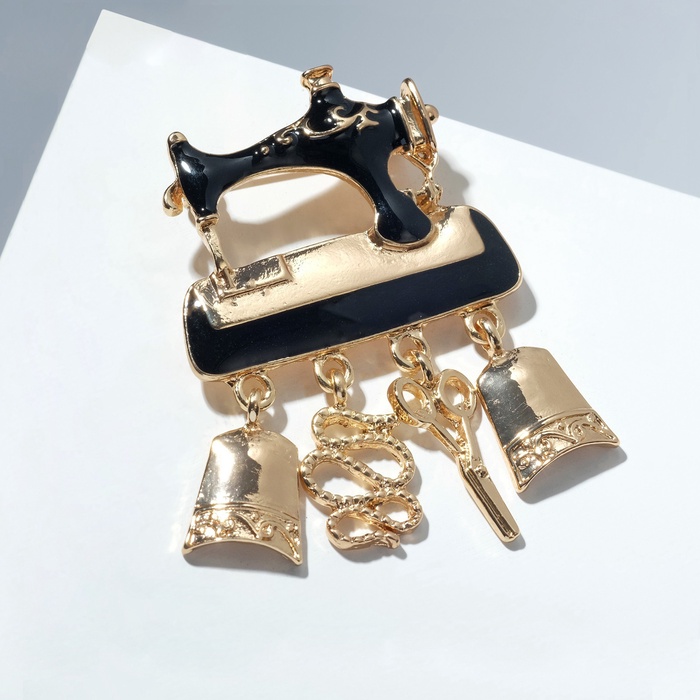 Брошь «Швейная машина» с подвесками, цвет чёрный в золоте
