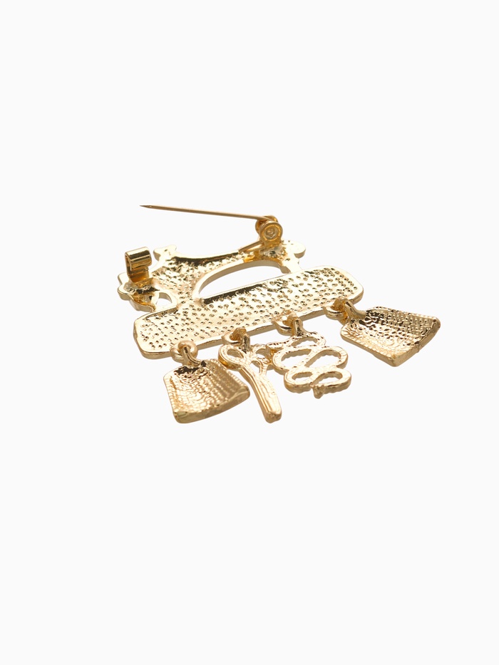 Брошь «Швейная машина» с подвесками, цвет чёрный в золоте — Характеристики