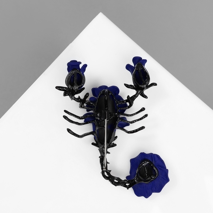 Брошь «Скорпион» роза, цвет синий в чёрном металле — Характеристики