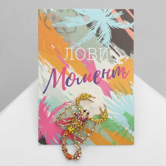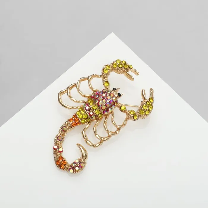 Эта изящная брошь с подвижным хвостом воплощает в себе энергетику и загадочность знака Скорпиона. Многоцветные стразы на золотистой металлической основе создают эффект живого мерцания, а динамичный дизайн с подвижным элементом придаёт украшению особую выразительность и оригинальность.