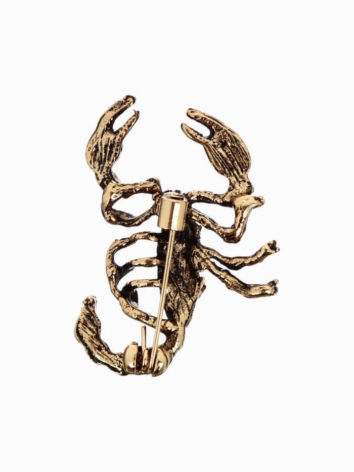 Брошь с изображением скорпиона в чёрном цвете на основе из металла с покрытием чернёного золота — это стильный и выразительный аксессуар, который подчеркнёт индивидуальность и характер своего обладателя. Компактный размер 2,5 см позволяет носить её как самостоятельное украшение или в сочетании с другими элементами гардероба, добавляя образу загадочности и глубины.