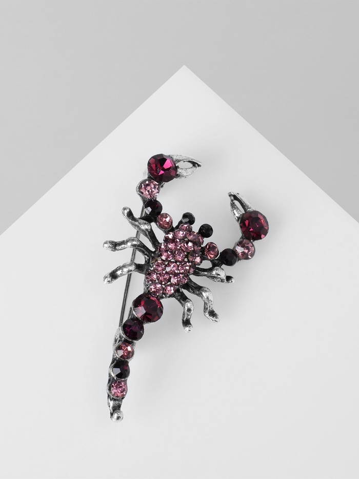 Брошь «Скорпион», цвет розово-фиолетовый в черненом серебре — Характеристики