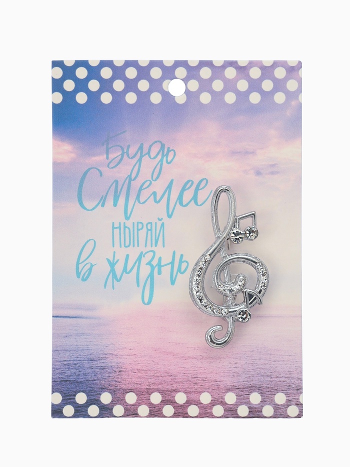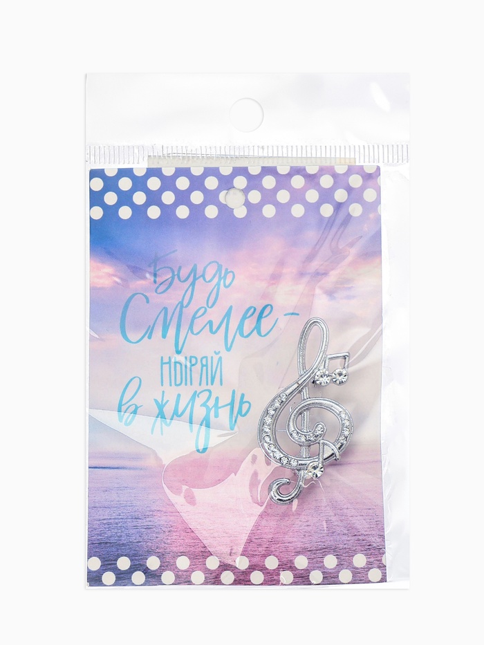 Брошь «Скрипичный ключ» и нотки, цвет белый в серебре — Характеристики
