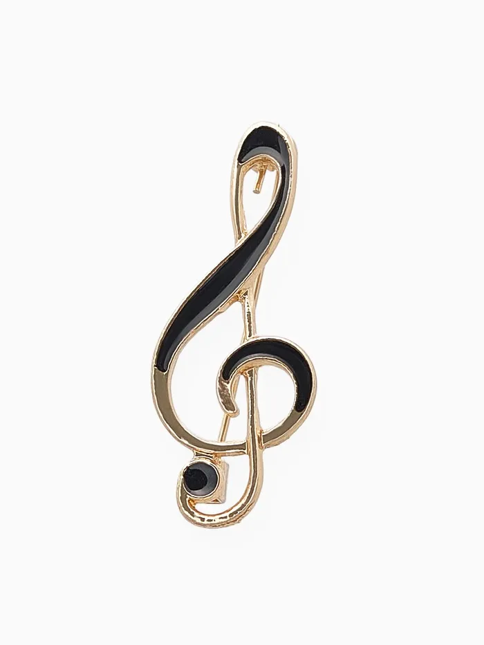 Аксессуар для тех, кто ценит музыку и стиль. Миниатюрная брошь с изображением скрипичного ключа в чёрном и золотом оформлении станет выразительным дополнением образа женщины-музыканта или поклонницы классики.