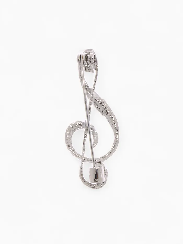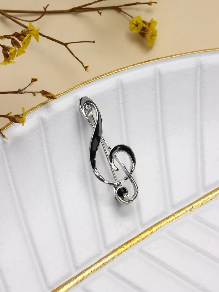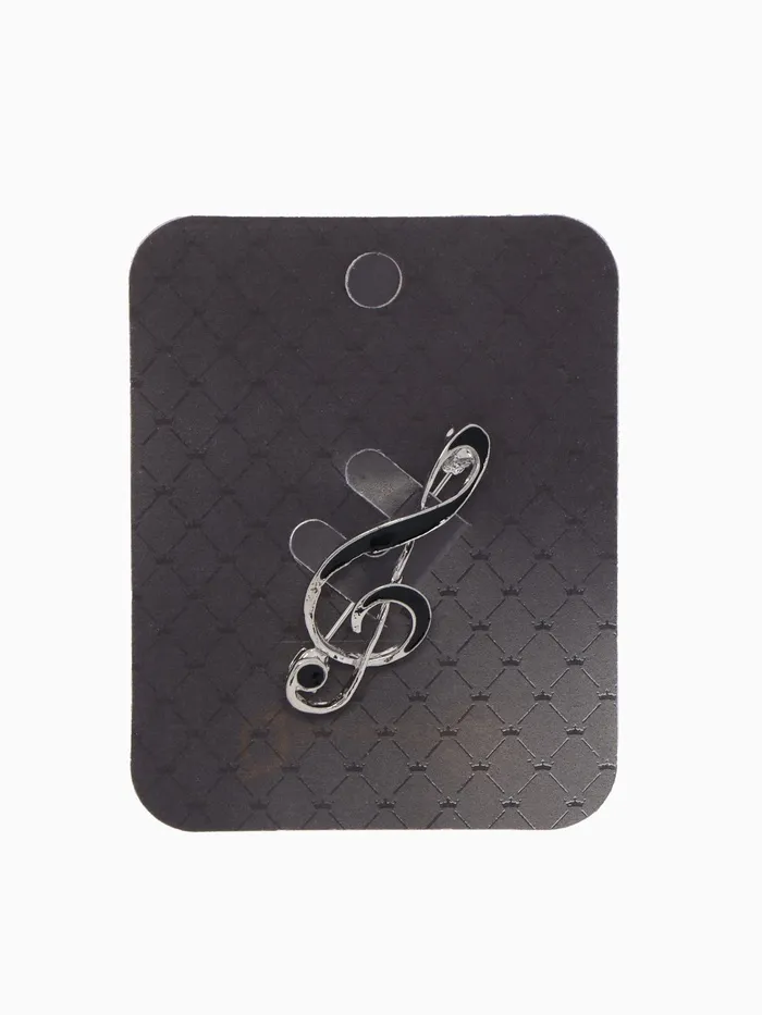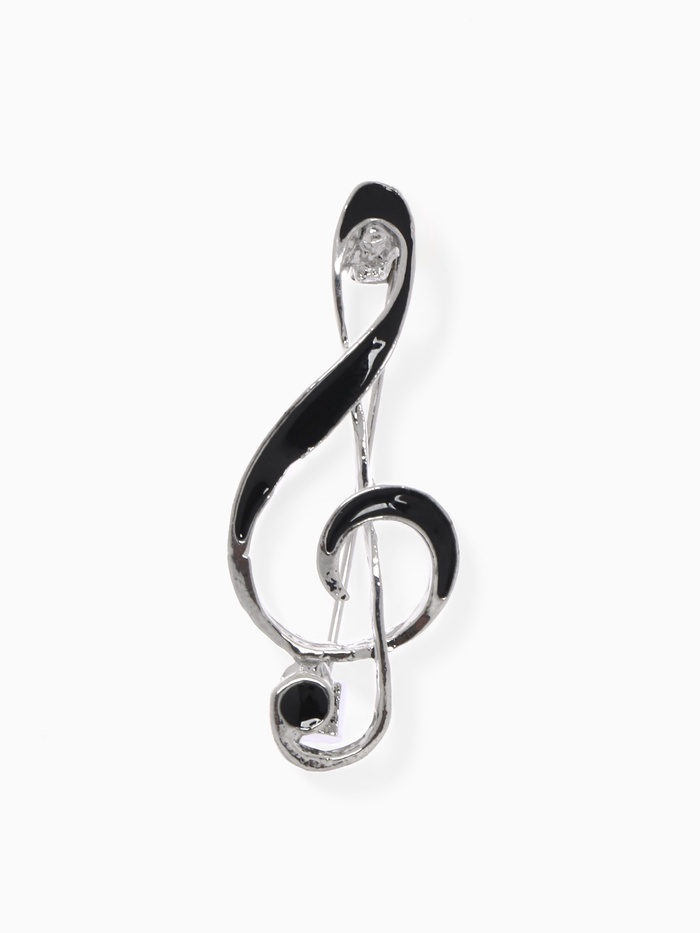 Выразительный акцент для любителей музыки. Стильная брошь с изображением скрипичного ключа в чёрном и серебряном оформлении станет подходящим дополнением гардероба музыканта или поклонника классической музыки.